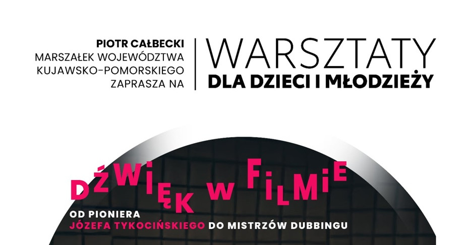 Marszałek Województwa Piotr Całbecki, Fundusz Filmowy Kujawy Pomorze oraz Kujawsko-Pomorskie Centrum Edukacji i Innowacji (KPCEI) zapraszają dzieci i młodzież w wieku 10–18 lat z województwa kujawsko-pomorskiego na wyjątkowe, dwudniowe warsztaty aktorsko-dubbingowe.