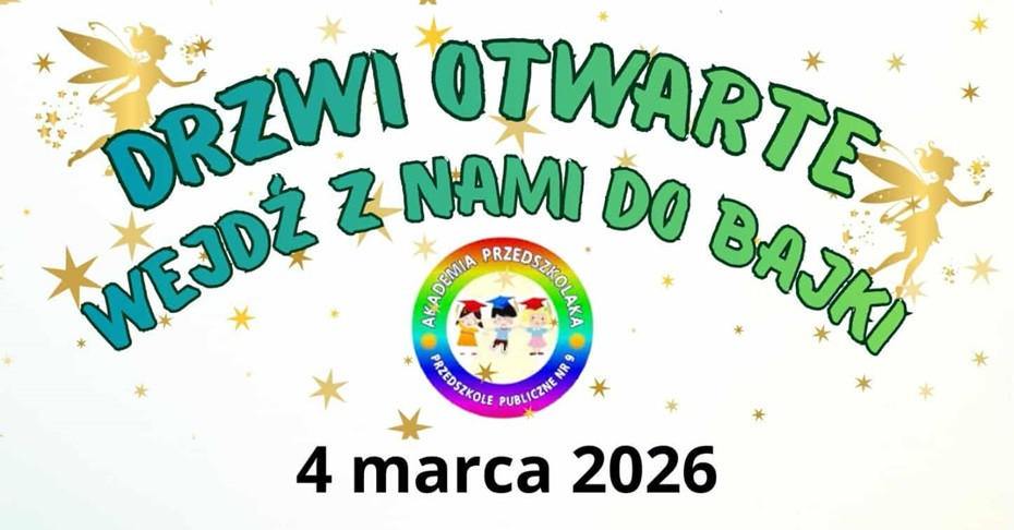 4 marca 2026 r. Przedszkole Publiczne nr 9 im. Akademia Przedszkolaka przy ul. Łanowej 3 zaprosi najmłodszych wraz z rodzicami na wyjątkowe Drzwi Otwarte pod hasłem „Wejdź z nami do bajki”.