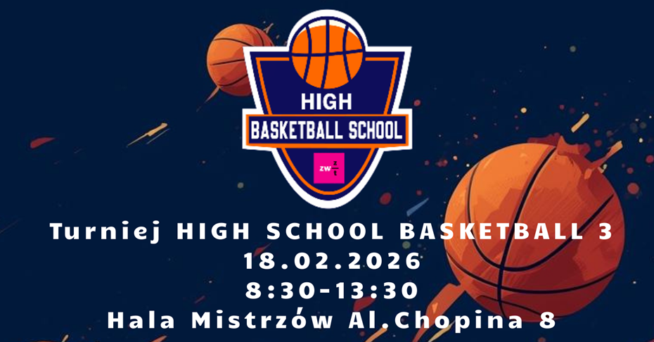 W środę, 18 lutego 2026 roku, we Włocławku odbędzie się Turniej HIGH SCHOOL BASKETBALL 3. Zawody zaplanowano w godzinach 8:30–13:30 w Hali Mistrzów.