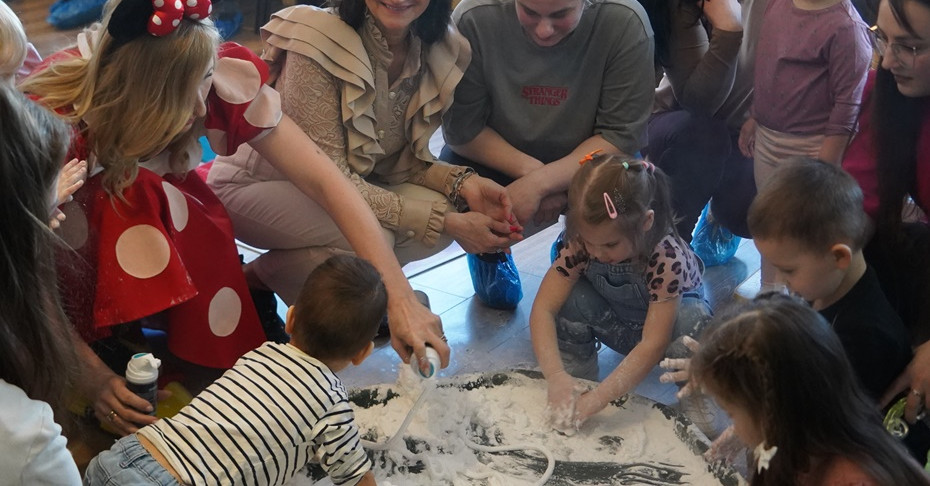 Na maluchy czekały także liczne stacje aktywności, m.in. ścieżki sensoryczne, wirujący stożek, równoważnie, malowanie na folii, tworzenie sensorycznego śniegu czy dmuchanie na pływające pingwiny na „krze lodu". Dzieci z ogromnym zaangażowaniem uczestniczyły w proponowanych działaniach, wykazując ciekawość, kreatywność i nieskrywaną radość.