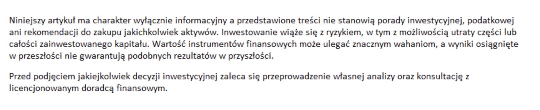 Należy jednak pamiętać, że podobnie jak w przypadku każdego instrumentu finansowego, inwestowanie w ETN i ETC wiąże się zarówno z korzyściami, jak i określonymi ograniczeniami. Zrozumienie ich konstrukcji pozwala ocenić, w jaki sposób mogą one uzupełnić portfel inwestycyjny oraz jakie ryzyka należy brać pod uwagę przy podejmowaniu decyzji inwestycyjnych.