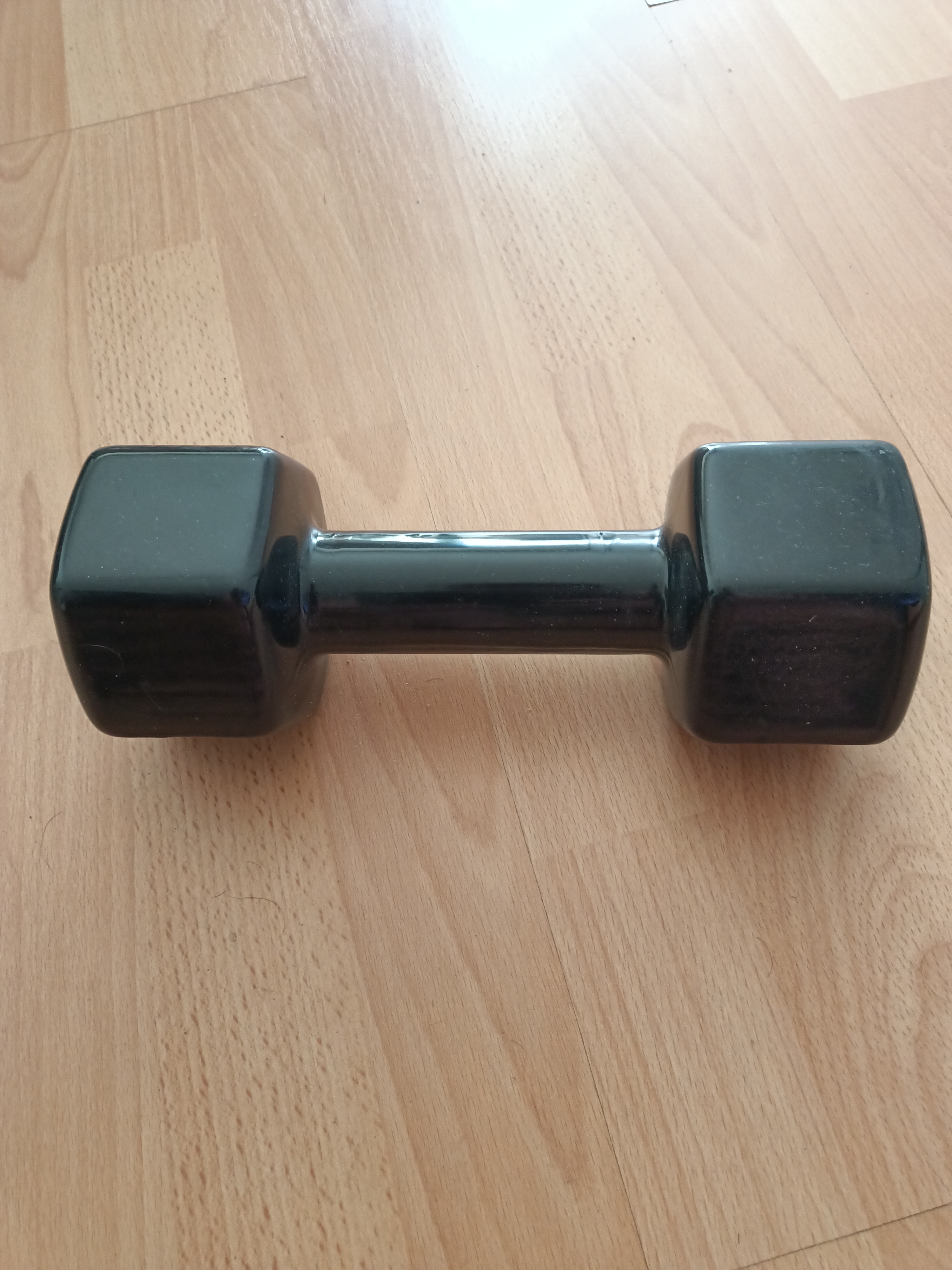 Sprzedam hantel żeliwny 7kg., który został pokryty grubą, czarną powłoką winylową.