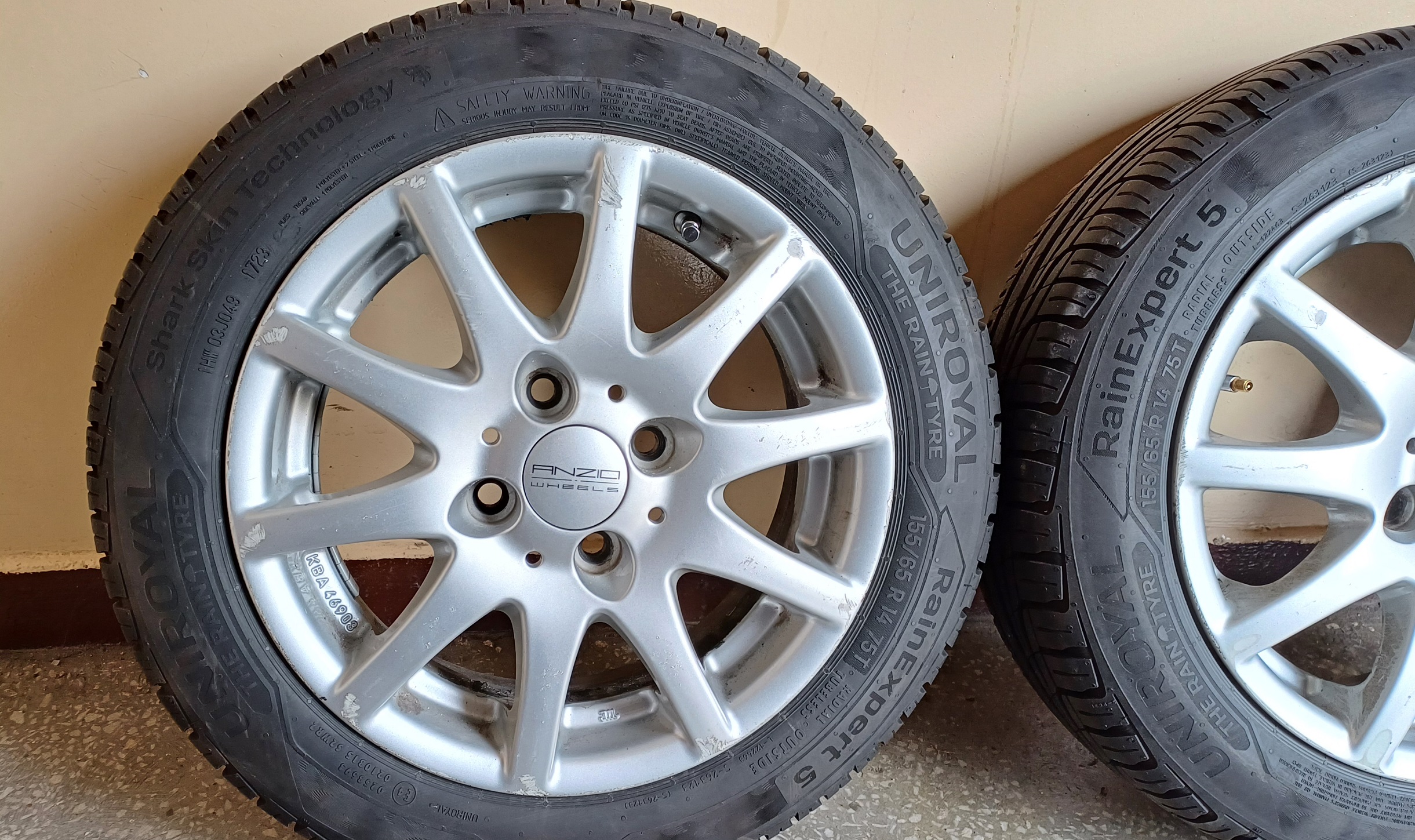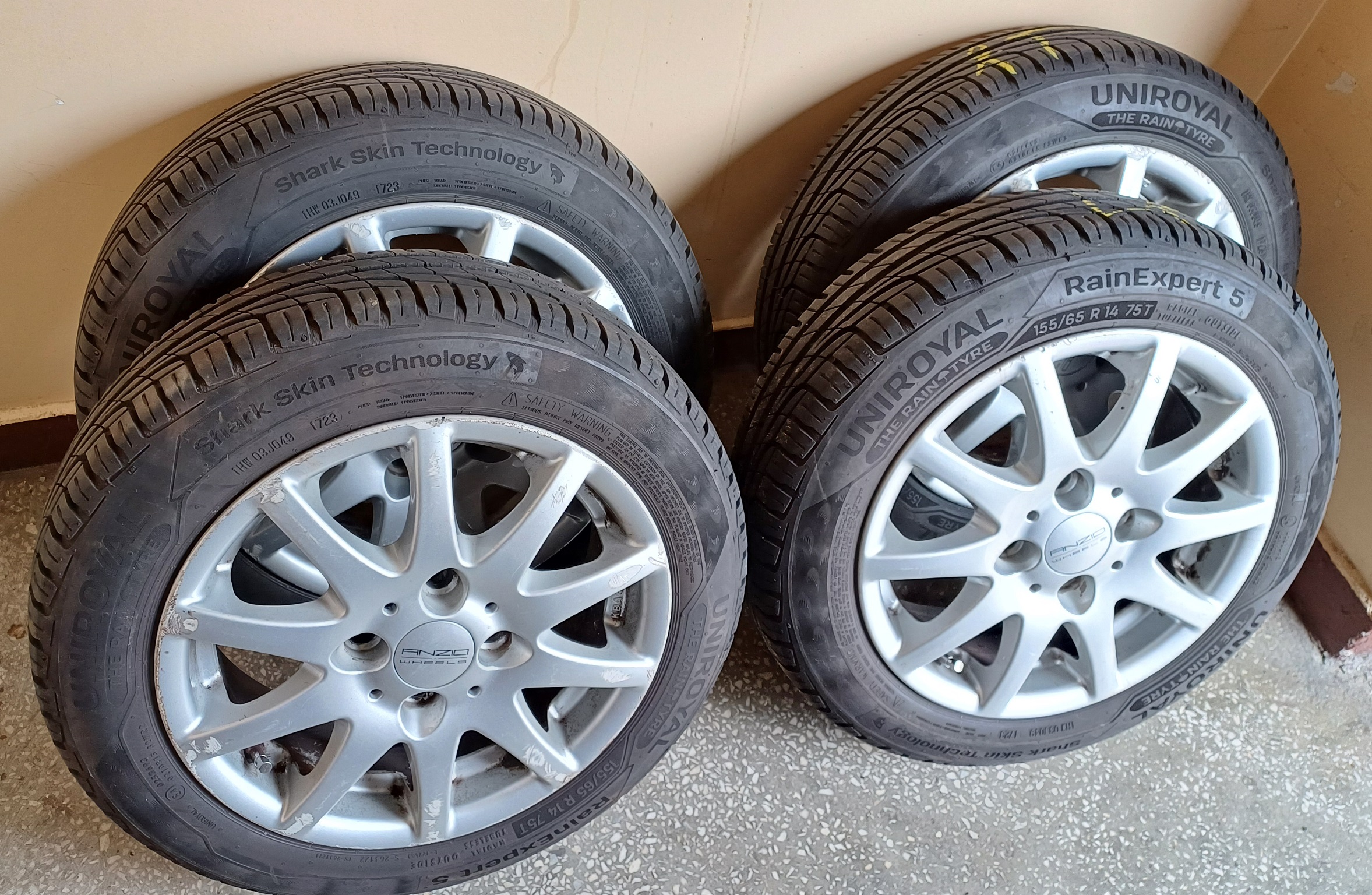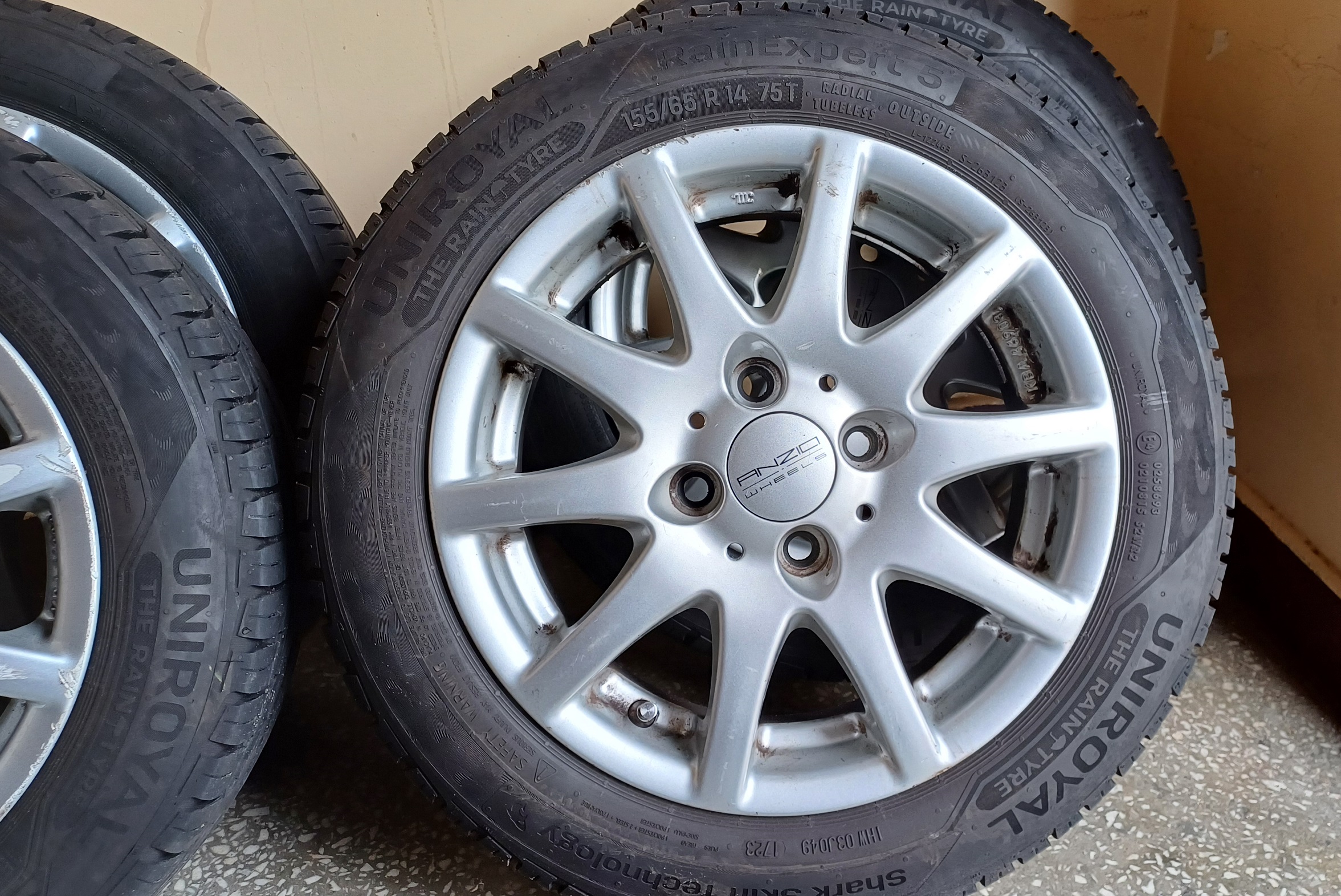 Komplet 4 sztuk opon letnich Uniroyal RainExpert 5 155/65 R14 , Opony prawie nowe, pred zdjęciem przejechały około 200 km , rok produkcji 2023 Okazyjna cena. kto pierwszy ten lepszy.