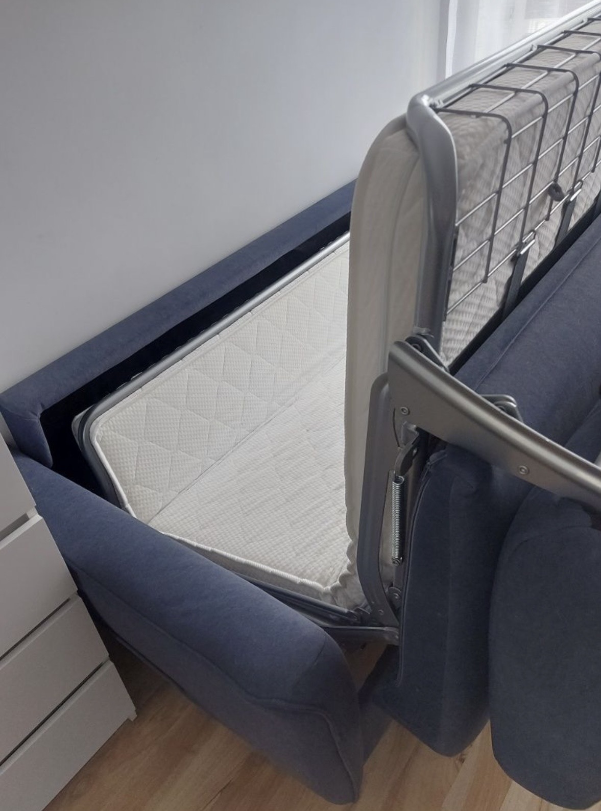 Sprzedam sofę ze stelażem włoskim zakupiona w Agata Meble. Odbiór osobisty we własnym zakresie Wymiary: Wysokość 84cm, głębokość 97cm, szerokość 194cm Wymiary powierzchni spania: 140x196cm Wysokość siedziska 47cm Głębokość siedziska 58cm Materac ma szerokość 140 cm. Wykonany z pianki o grubości 11 cm. Sofa nie jest wyposażona w pojemnik na pościel